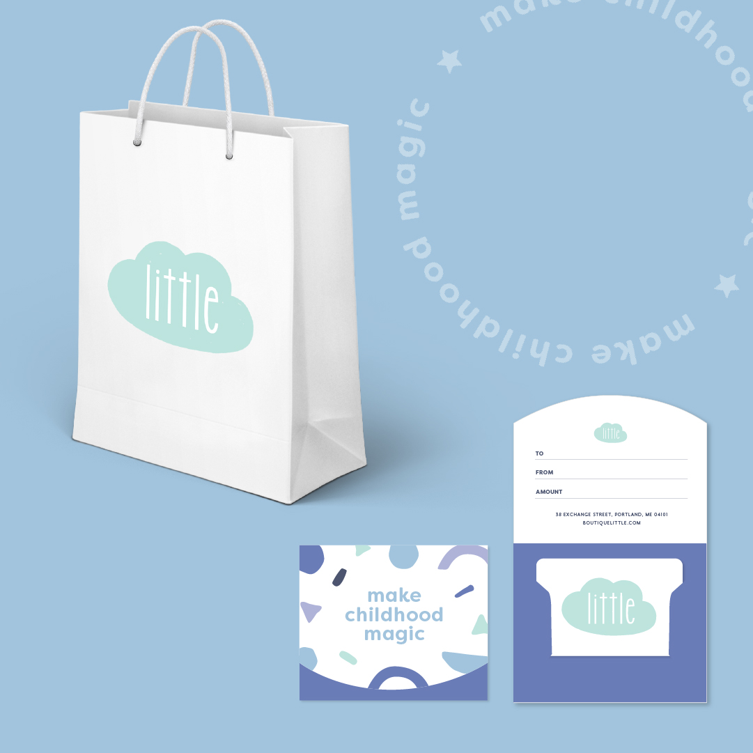 Little is a curated children's clothing and toy boutique on Exchange Street in Portland, Maine, founded by Angela and John Foddrill. The shop carries premium brands and one-of-a-kind pieces for kids, all grounded in the idea that childhood should feel magical. We've partnered with Little for years, and over time, we've designed and printed several rounds of physical assets as their brand has evolved.