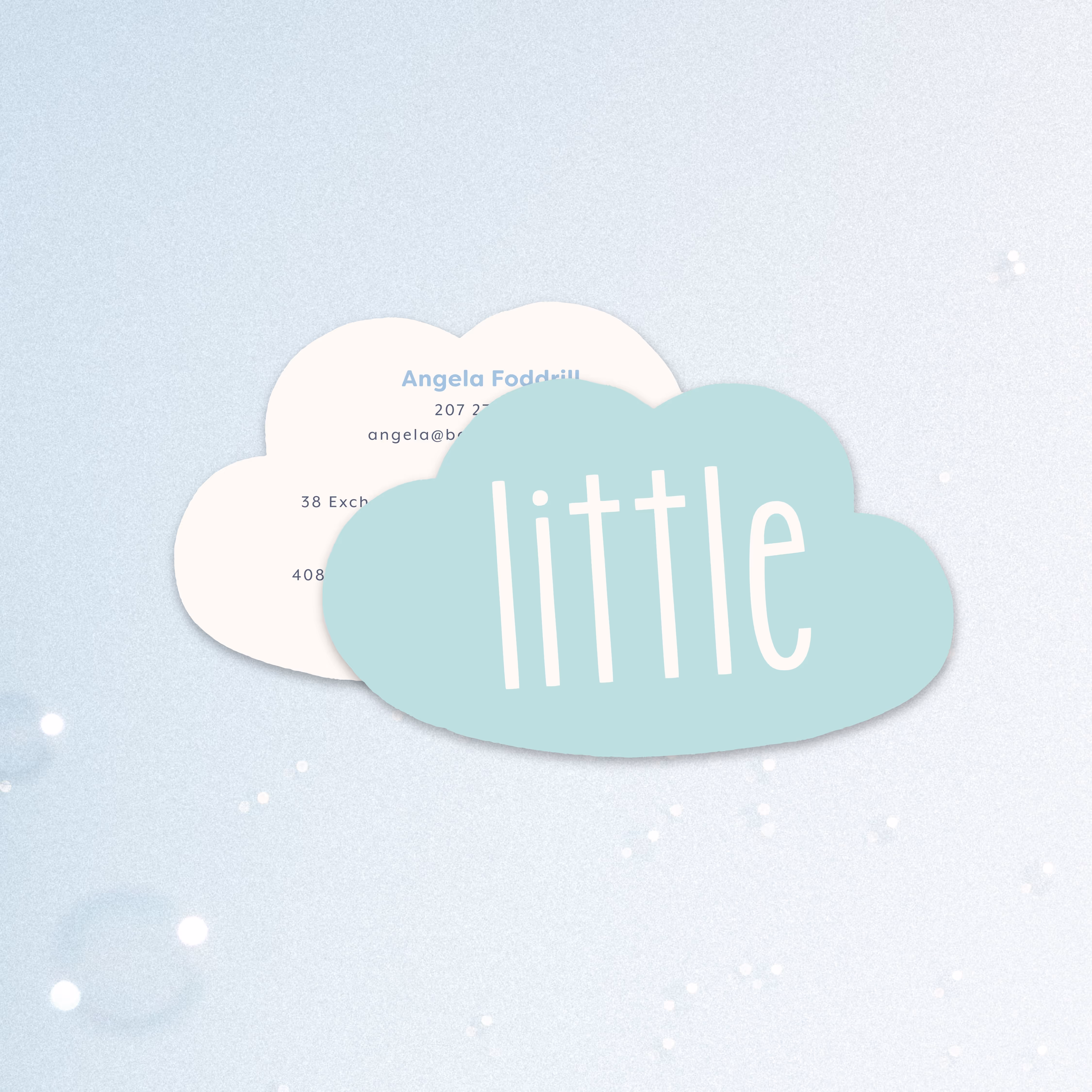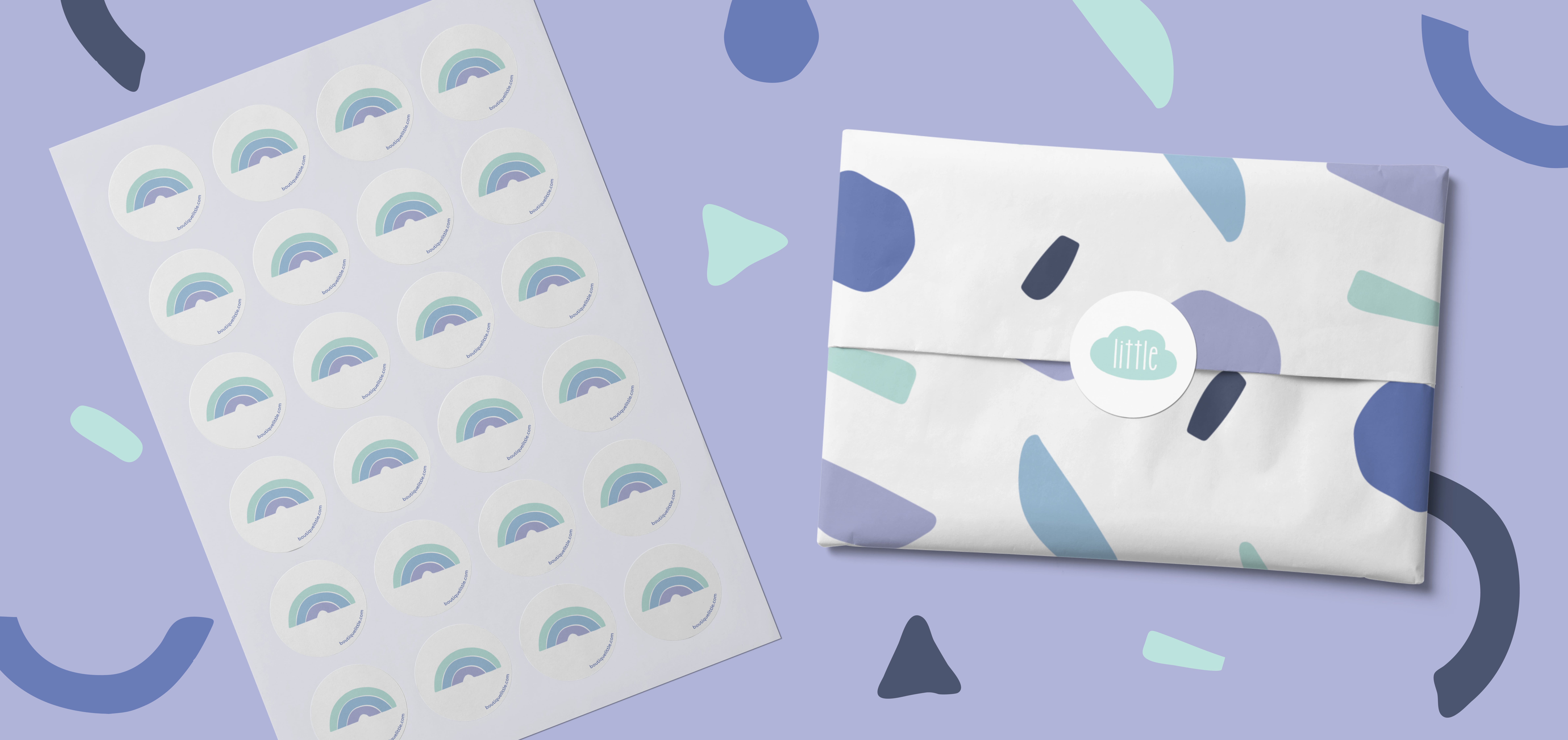 The latest iteration began with a 2021 brand refresh, where we expanded Little's visual foundation. We made a subtle but important update to the logo, removing a sketch texture from the original cloud mark for a cleaner, more modern look. We broadened their color palette into a dreamy range of blues and purples, shifted headline typography from a very youthful display typeface to something more sophisticated yet playful, and designed a system of custom iconography and a pattern built from construction-paper cutout shapes. With the refreshed brand in hand, it was time to update the full suite of physical assets.