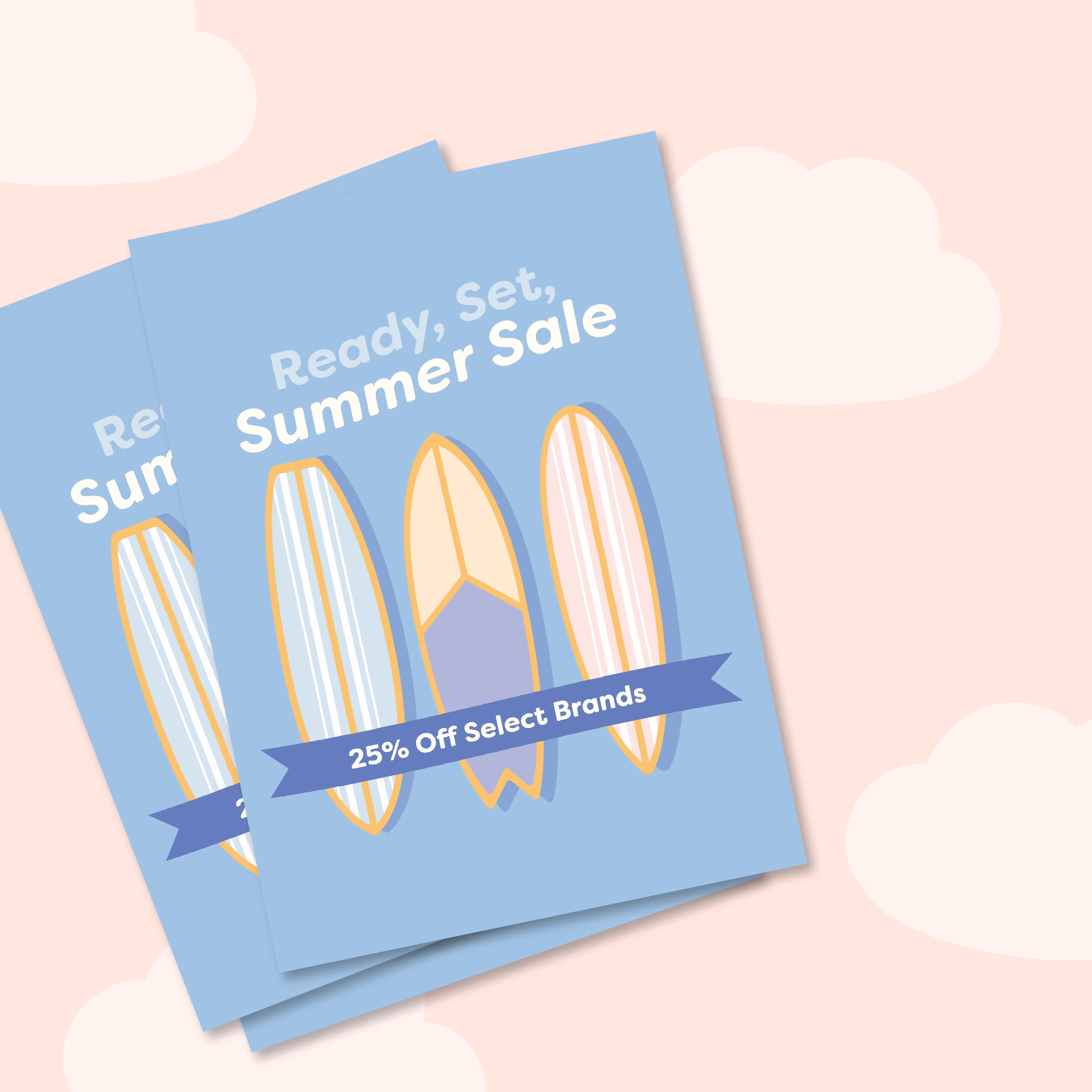 We designed and print-managed packaging, in-store signage, and branded materials across Little's day-to-day and seasonal needs. Tissue paper features the new brand pattern printed on premium stock, adding personality while pairing with a deliberately simple, clean shopping bag design. We created a system of shipping stickers for daily use along with holiday-specific designs. Business cards and hang tags are die-cut in the shape of the brand's cloud logo. Gift cards and holders carry the updated palette. For the Exchange Street storefront, we designed cloud-shaped exterior signage and door decals with hours and address info. Recurring promo and sale signage was designed for in-store display throughout the seasons.