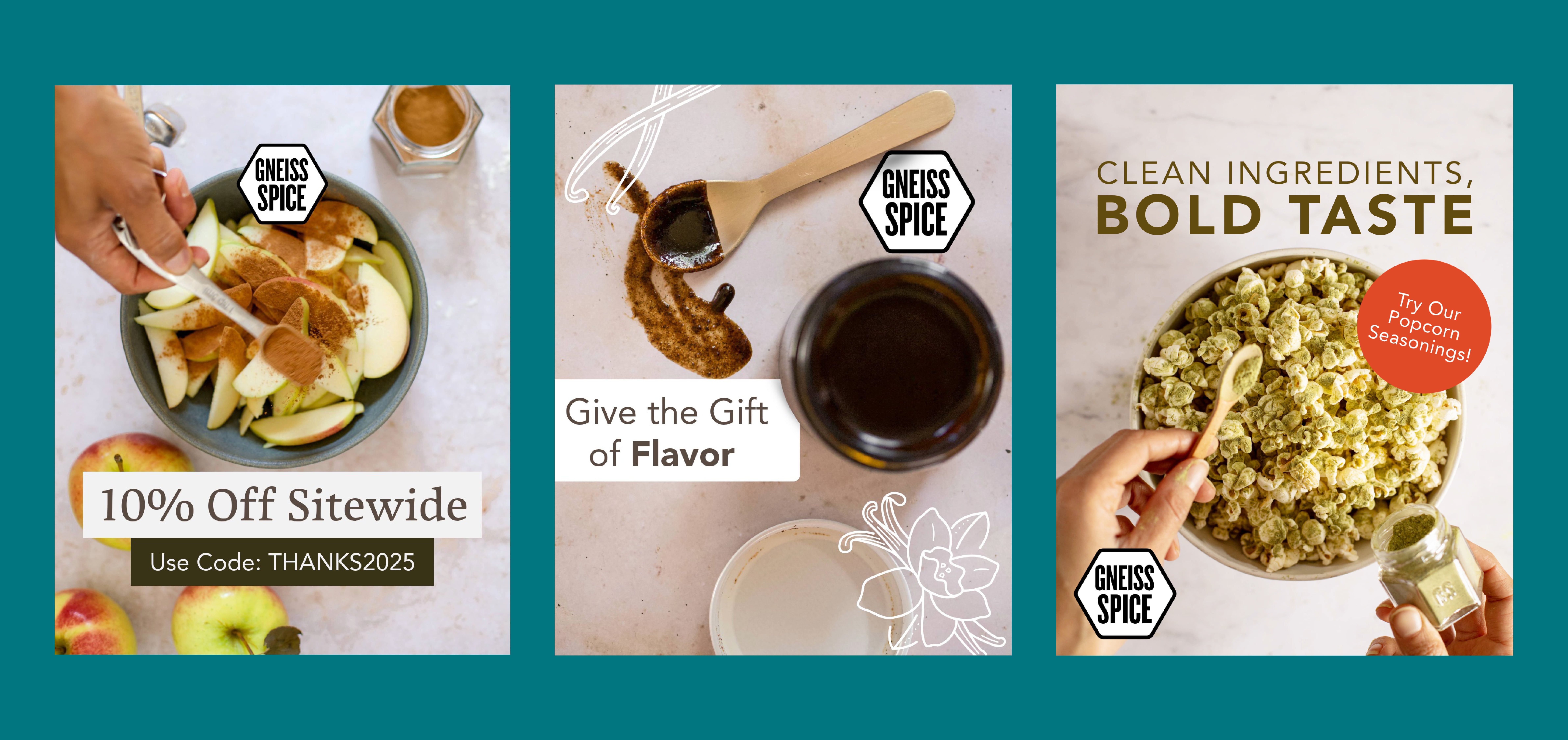Gneiss Spice is a maker of unique magnetic spice jars and a supplier of organic spices, popcorn seasonings, and vanilla products. What started as a passion project in 2009 has grown into a beloved brand synonymous with organized, sustainable, and accessible spice storage.