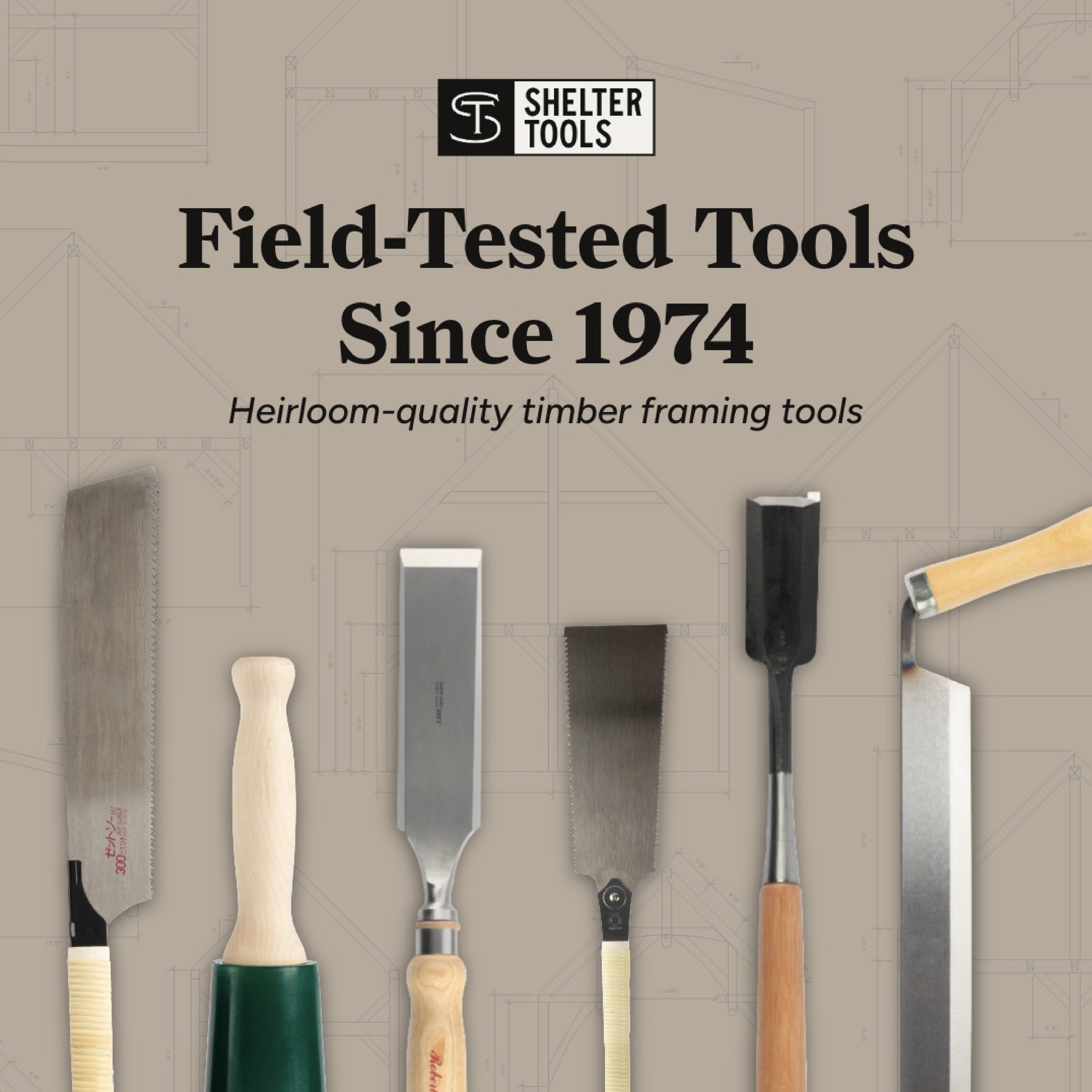 Shelter Tools has been a trusted source for high-quality timber framing and woodworking tools since the 1970s. When Pat and Patsy Hennin opened what would become Shelter Tools, they were one of the only places in the country where builders could find specialty Japanese timber framing tools—slicks, saws, chisels, and everything else needed for traditional joinery. Today, Shelter Tools remains one of the premier timber framing and woodworking retailers in the United States.